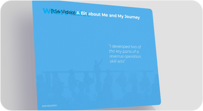 (1:54 Video) A Bit about Me and My Journey What’s Inside “I developed two of the key parts of a revenue operation, skill sets” Introduction