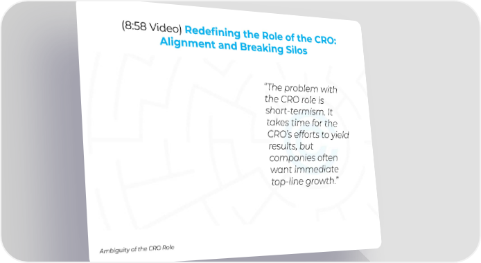 (8:58 Video) Redefining the Role of the CRO: Alignment and Breaking Silos “The problem with the CRO role is short-termism. It takes time for the CRO’s efforts to yield results, but companies often want immediate top-line growth.” Ambiguity of the CRO Role