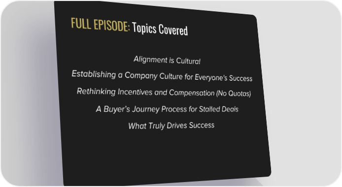 FULL EPISODE: Topics Covered Alignment is Cultural Establishing a Company Culture for Everyone's Success Rethinking Incentives and Compensation (No Quotas) A Buyer’s Journey Process for Stalled Deals What Truly Drives Success