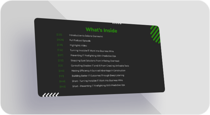 What’s Inside [3:20] Introduction to Juliano Giannerini [26:26] Full Podcast Episode [2:06] Highlights Video [7:22] Turning Invisible IT Work Into Business Wins [3:27] Preventing IT Firefighting With Predictive Ops [2:52] Stopping Spot Solutions From Inflating Overhead [1:31] Controlling Shadow IT and AI From Creating Unfixable Tools [3:45] Making Efficiency A Survival Advantage In Construction [1:01] Building Better IT Outcomes Through Deep Listening [0:48] Short - Turning Invisible IT Work Into Business Wins [0:43] Short - Preventing IT Firefighting With Predictive Ops