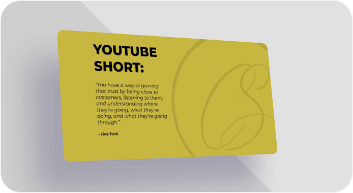 YOUTUBE SHORT: “You have a way of gaining that trust by being close to customers, listening to them, and understanding where they're going, what they're doing, and what they're going through.” – Lina Tonk