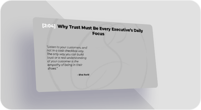 [2:04] Why Trust Must Be Every Executive’s Daily Focus “Listen to your customers, and not in a task checkbox way. The only way you can build trust or a real understanding of your customer is the empathy of being in their shoes.” – Efrat Ravid