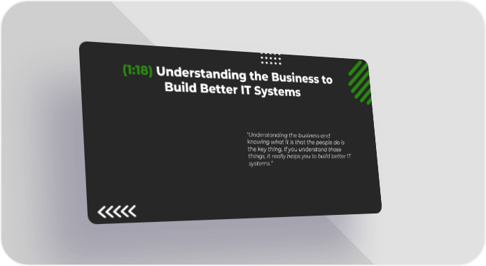 14 (1:18) Understanding the Business to Build Better IT Systems Understanding the business and knowing what it is that the people do is the key thing. If you understand those things, it really helps you to build better IT systems.