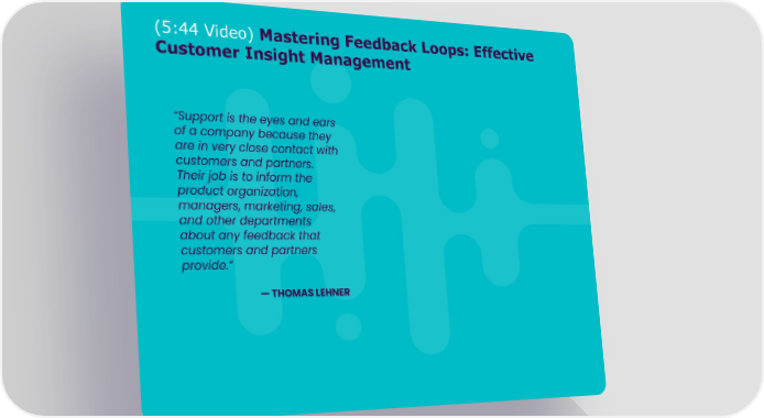 (5:44 Video) Mastering Feedback Loops: Effective Customer Insight Management “Support is the eyes and ears of a company because they are in very close contact with customers and partners. Their job is to inform the product organization, managers, marketing, sales, and other departments about any feedback that customers and partners provide.” — THOMAS LEHNER