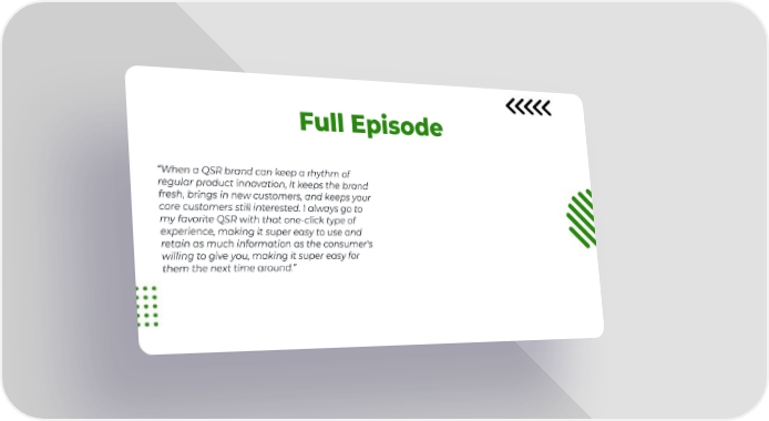 Full Episode “When a QSR brand can keep a rhythm of regular product innovation, it keeps the brand fresh, brings in new customers, and keeps your core customers still interested. I always go to my favorite QSR with that one-click type of experience, making it super easy to use and retain as much information as the consumer's willing to give you, making it super easy for them the next time around.”