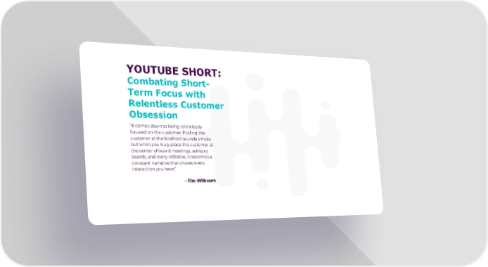 YOUTUBE SHORT: Combating Short- Term Focus with Relentless Customer Obsession βIt comes down to being relentlessly focused on the customer. Putting the customer at the forefront sounds simple, but when you truly place the customer at the center of board meetings, advisory boards, and every initiative, it becomes a constant narrative that shapes every interaction you have.β - Tim Wilbourn