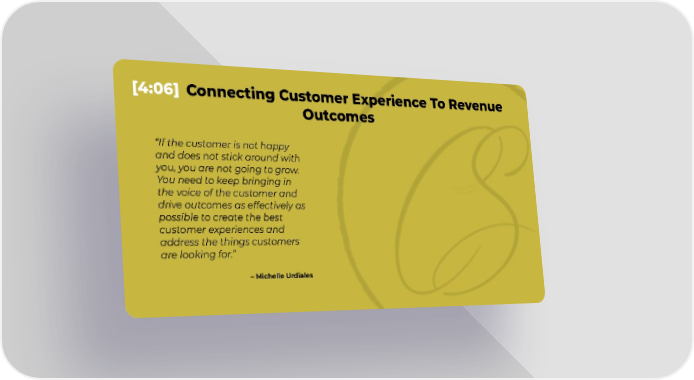 [4:06] Connecting Customer Experience To Revenue Outcomes If the customer is not happy and does not stick around with you, you are not going to grow. You need to keep bringing in the voice of the customer and drive outcomes as effectively as possible to create the best customer experiences and address the things customers are looking for. Michelle Urdiales