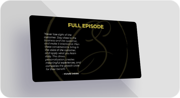 FULL EPISODE Never lose sight of the customer. Stay close to the business and the customer, and make it intentional. Plan these conversations, bring in the voice of the customer, and apply what you learn daily. This drives personalization, creates meaningful experiences, and completes the growth circle for their benefit. Michelle Urdiales