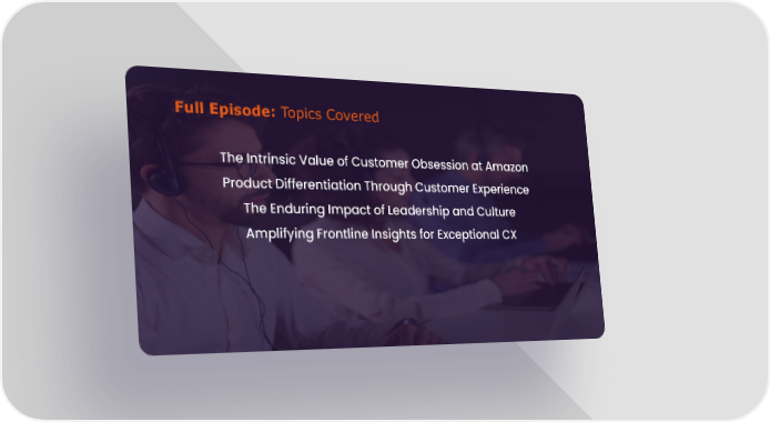 Full Episode: Topics Covered The Intrinsic Value of Customer Obsession at Amazon Product Differentiation Through Customer Experience The Enduring Impact of Leadership and Culture Amplifying Frontline Insights for Exceptional CX