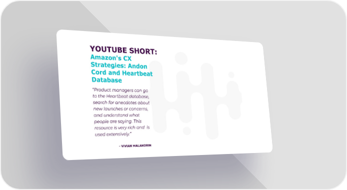 YOUTUBE SHORT: Amazon's CX Strategies: Andon Cord and Heartbeat Database “Product managers can go to the Heartbeat database, search for anecdotes about new launches or concerns, and understand what people are saying. This resource is very rich and is used extensively.” - VIVIAN MALANDRIN