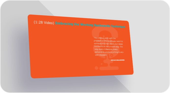 (1:28 Video) Embracing the Working Backwards Technique “You always start with the problem or the results you want to achieve and then trace your steps backward to the present day. This way, every milestone, every deliverable, and everything is very well mapped.” - VIVIAN MALANDRIN