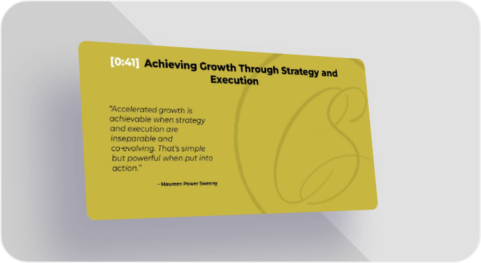 [0:41] Achieving Growth Through Strategy and Execution “Accelerated growth is achievable when strategy and execution are inseparable and co‑evolving. That’s simple but powerful when put into action.” – Maureen Power Sweeny