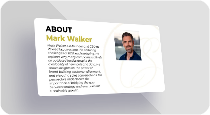 ABOUT Mark Walker Mark Walker, Co-founder and CEO at Revved Up, dives into the enduring challenges of B2B lead nurturing. He explores why many companies still rely on outdated tactics despite the availability of new tools and data. He shares insights on the power of brand-building, customer alignment, and elevating sales conversations. His perspective underscores the importance of bridging the gap between strategy and execution for sustainable growth.