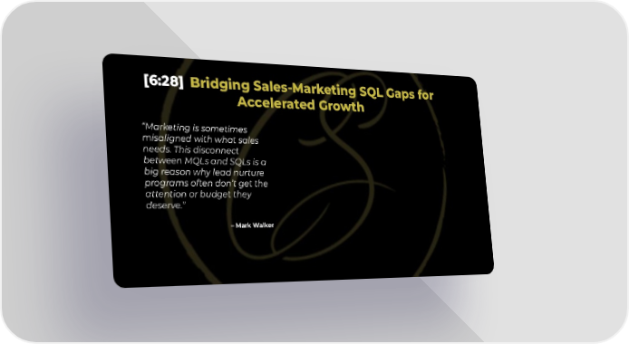 [6:28] Bridging Sales-Marketing SQL Gaps for Accelerated Growth “Marketing is sometimes misaligned with what sales needs. This disconnect between MQLs and SQLs is a big reason why lead nurture programs often don’t get the attention or budget they deserve.” – Mark Walker