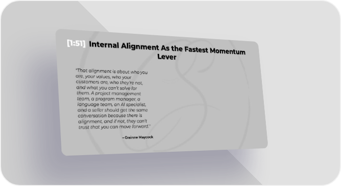 [1:51] Internal Alignment As the Fastest Momentum Lever "That alignment is about who you are, your values, who your customers are, who theyre not, and what you cant solve for them. A project management team, a program manager, a language team, an AI specialist, and a seller should get the same conversation because there is alignment, and if not, they cant trust that you can move forward." Grainne Maycock