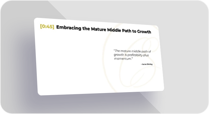 Why Hypergrowth Shouldn't Be Our Primary Goal Page 13 Page 15[0:45] Embracing the Mature Middle Path to Growth “The mature middle path of growth is profitability plus momentum.” – Luna Shirley